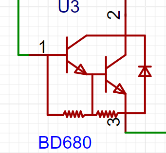 型号:BD680 供应商编号:C2935175,应该是PNP型你们画成NPN型了