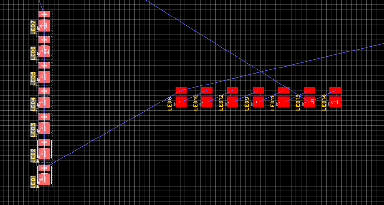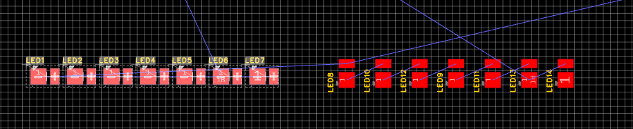怎么把左边横着的LED灯框选后旋转成右边竖着放的样子。右边是我手动单次一个一个旋转过来的,左边框选后按空格键整排LED灯都在旋转。