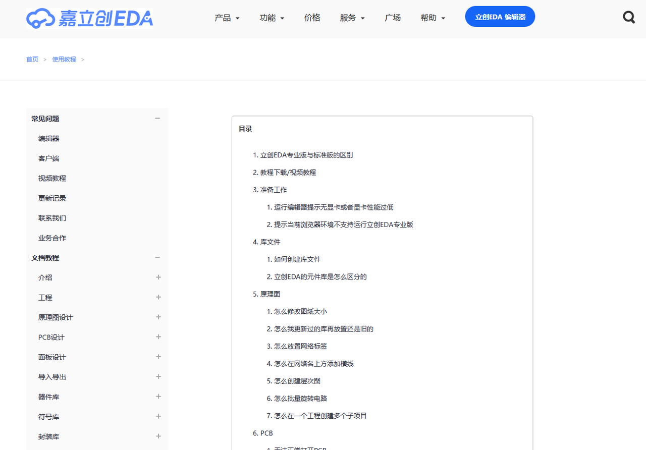 目前的《文档教程》是否可以满足您了解嘉立创EDA功能呢?