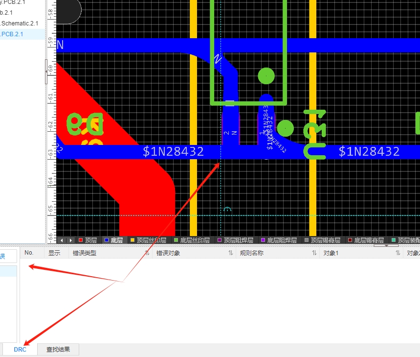 焊盘与走线重合时DRC检查竟然通过了,不知道是不是bug,已经重新打板