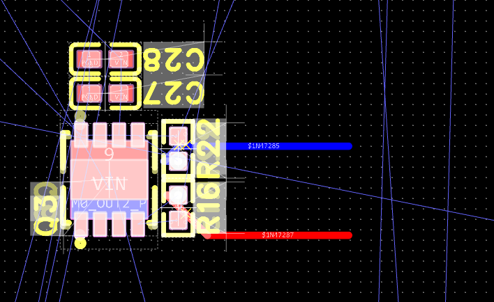 当对元件、导线、过孔对象进行组合后,拖动该组合,导线会产生异常,如图所示。版本为专业版V2.1.21