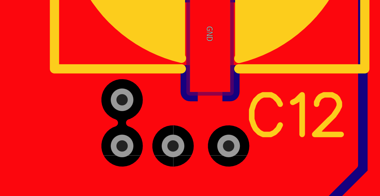 如图,想通过过孔将上下两层铺铜的GND连起来,结果发现过孔没有与铺铜相连,求教