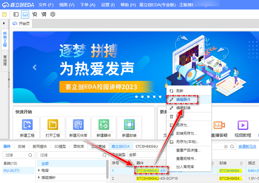 每逢右击个人库中的器件准备编辑器件时,