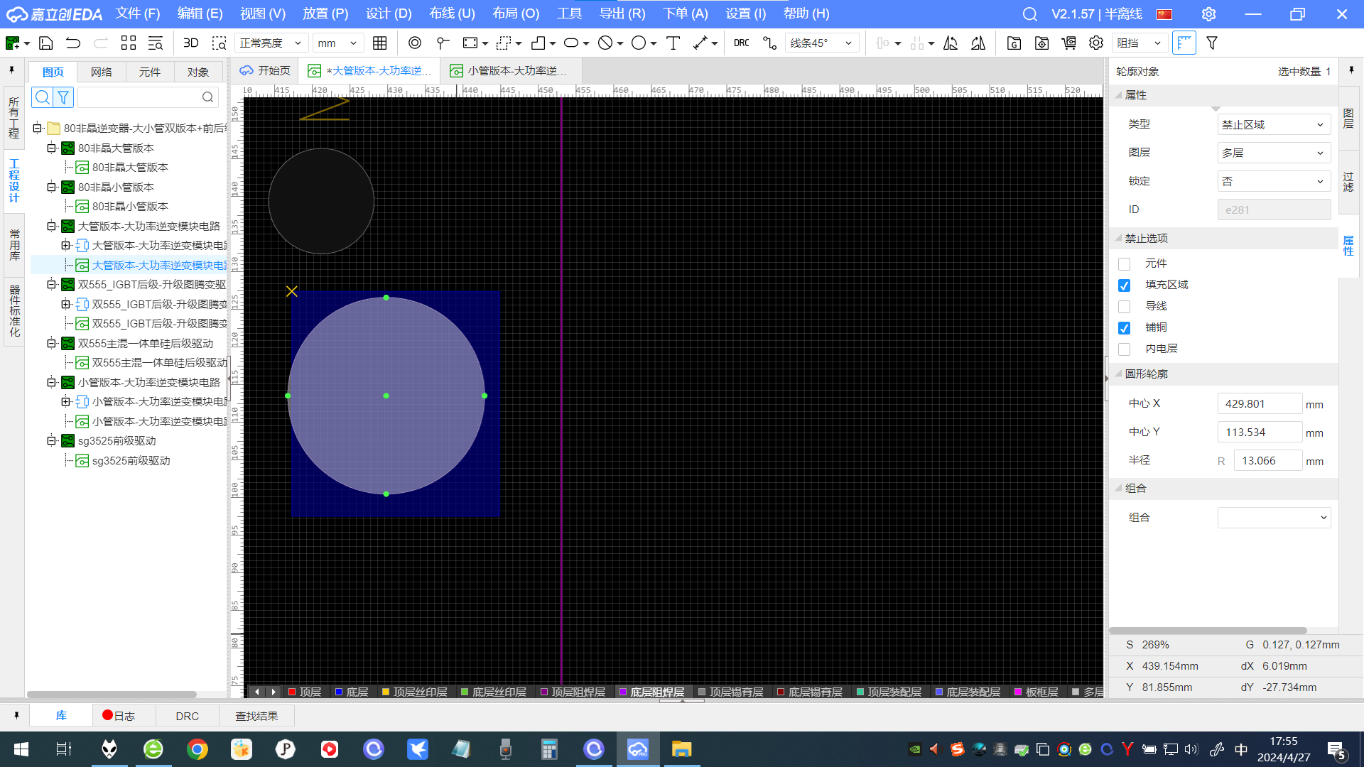 画PCB时,禁止区不能有效组织填充,能有效禁止铺铜,但是铺铜不能开窗!