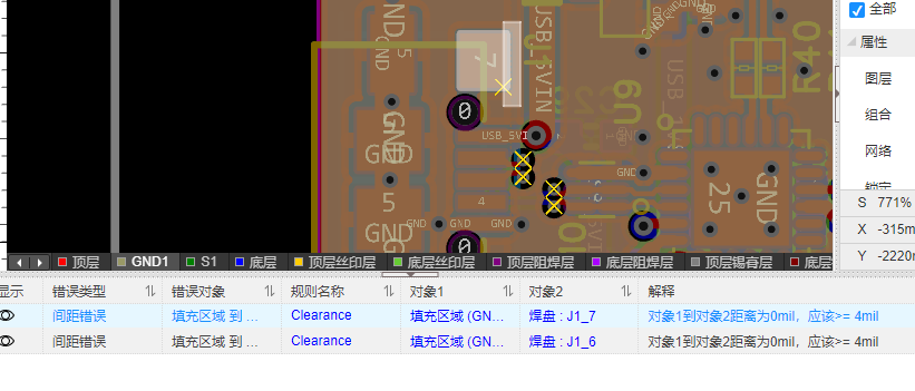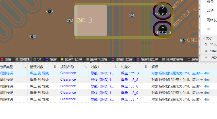1、填充区域到焊盘过近,可以进行直接删除填充区域,或者有其他处理方法;