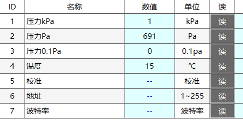 把数据打包好了 直接读两个地址 一个是kPa 一个是Pa 是两个整型的数据 用起来很方便很方便 (这点很方便 点个赞)