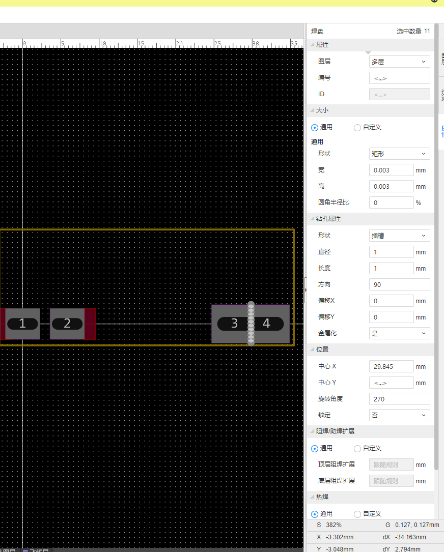 技术大佬,我想在板子上焊接这种电源模块,然后做这个焊盘,可以用一排小焊盘来将两个焊盘分割开吗?中间小的焊盘孔是不是会有沉铜导致达不到分割的效果?看3D图,好像有沉铜效果,心里没底,路过的大佬帮忙指点,谢谢大佬线先了