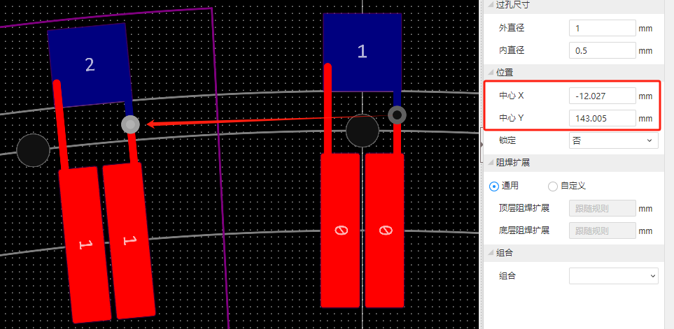 2 过孔和两条导线一起阵列