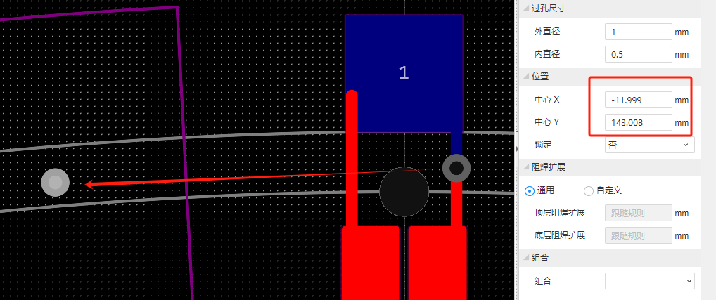 3 过孔和导线焊盘一起阵列