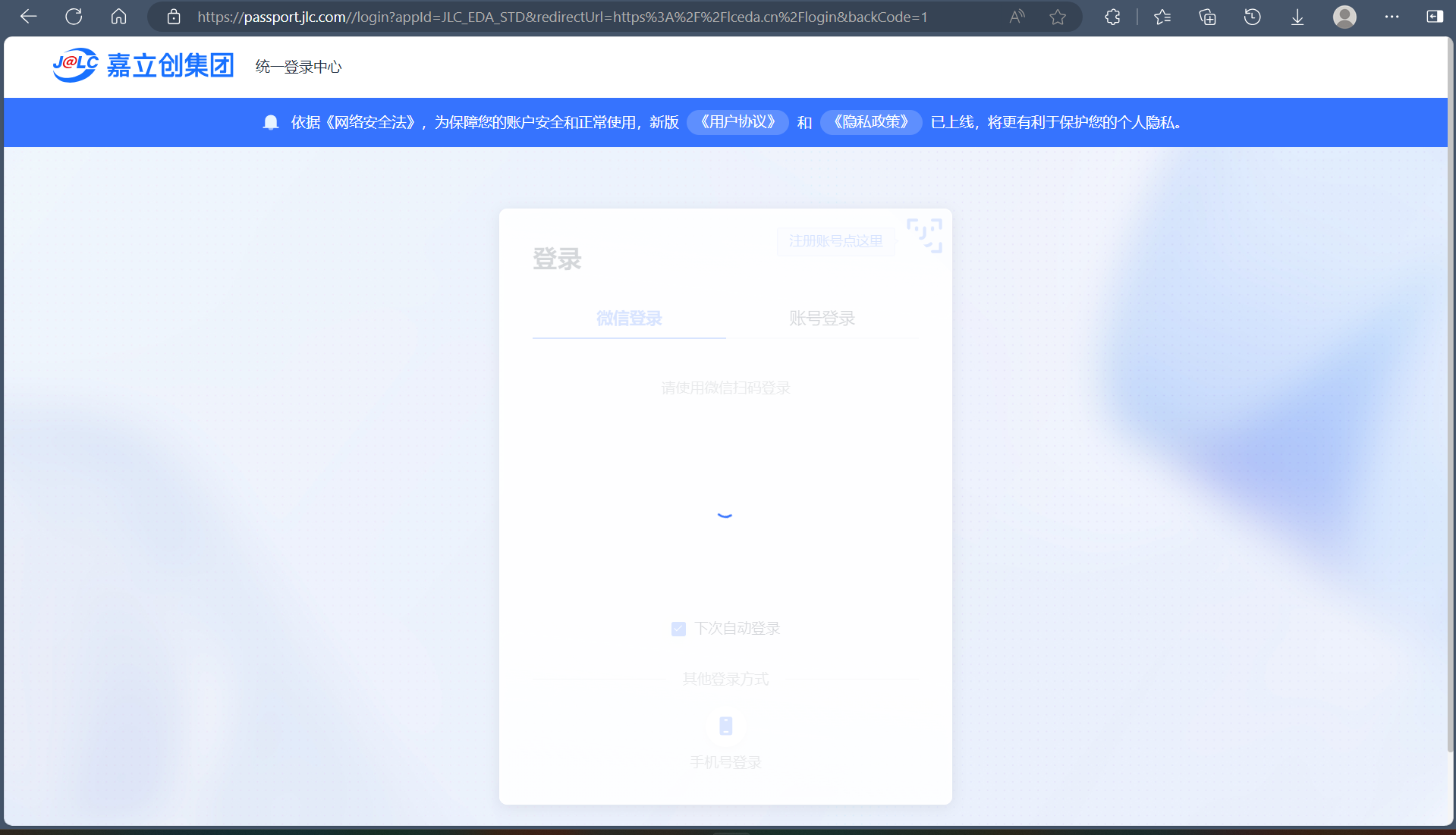 在edge浏览器打开嘉立创的平台(开源广场,下单助手,eda专业版等),都会跳到登陆界面,然后一直卡在那里转圈圈