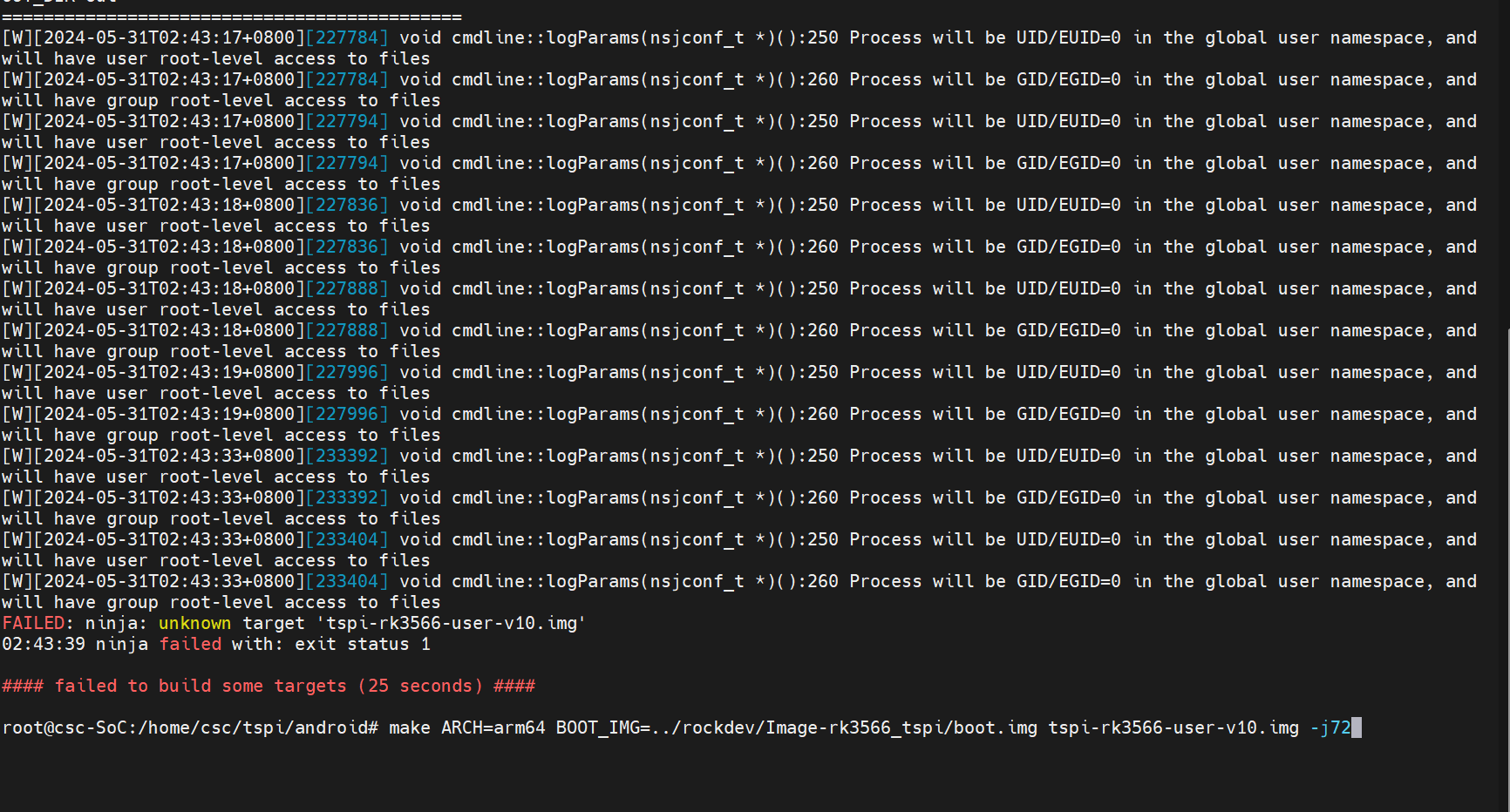 FAILED: ninja: unknown target 'tspi-rk3566-user-v10.img'