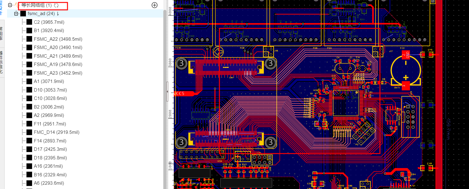 我单片机和fpga之间 fsmc通信如何实现总线的等长布线呢。。