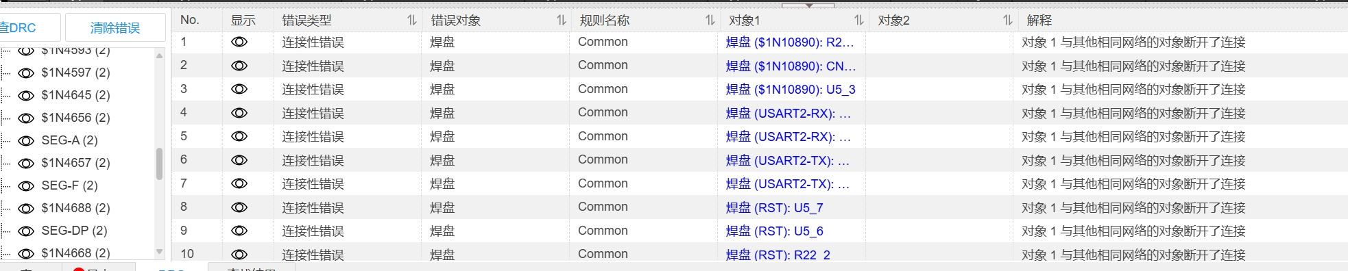 DRC检查一直提示焊盘与其他相同网络的对象断开了连接