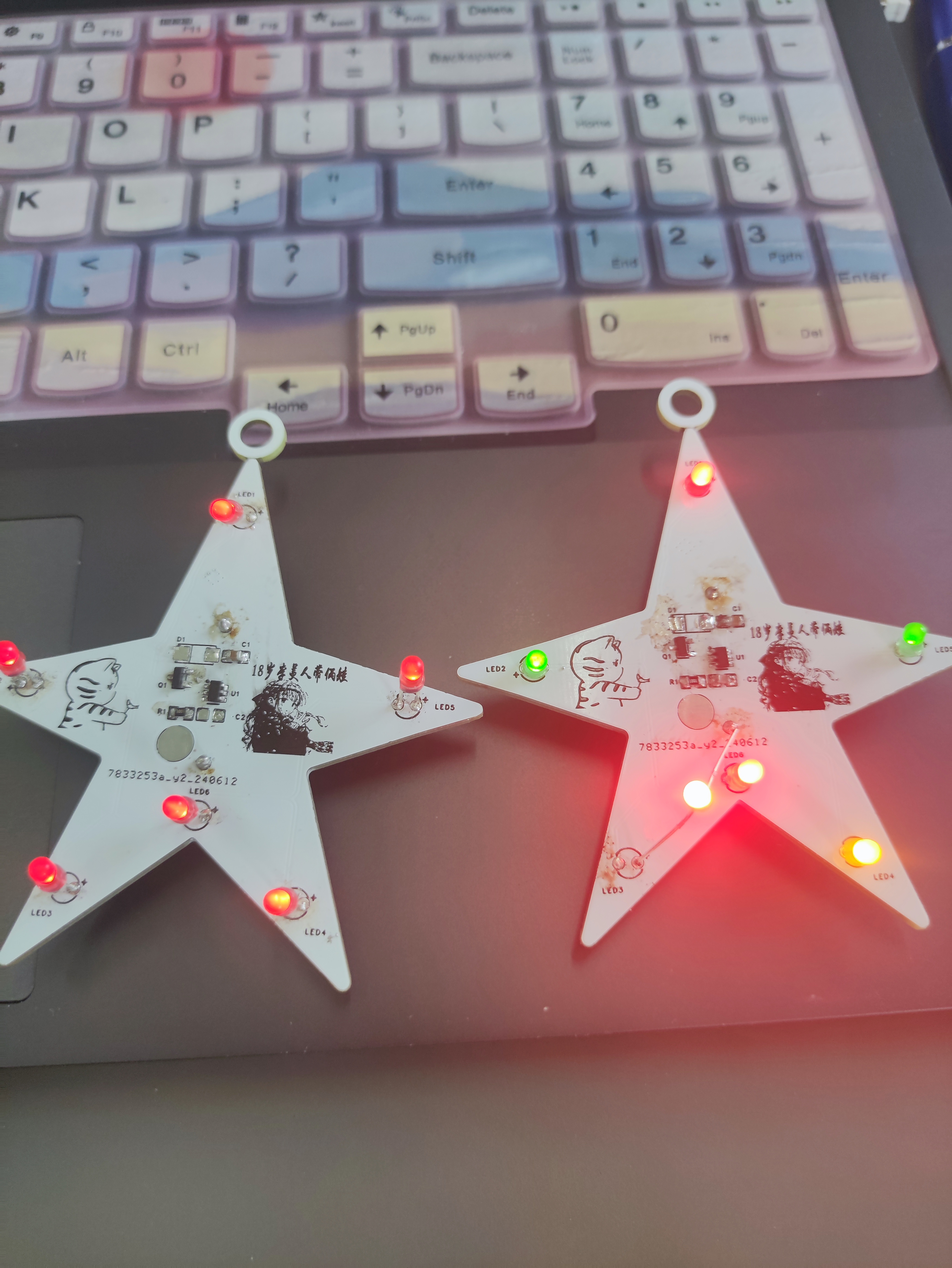 我在焊最后一个灯的时候,正极连上了,负极先没连,然后用焊头触碰负极焊盘结果所有的灯亮度比1.7v高得多,应该是电压变高了,但是如果把负极焊上去之后灯亮度又恢复原来的低亮度了。