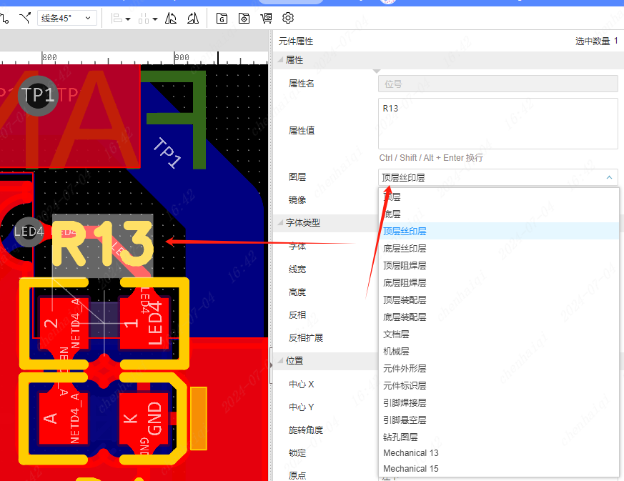 在立创EDA上怎么实现这种把器件自带的丝印框框移到其他层不在丝印层上显示,而且还可以在丝印层上增加自己的丝印?