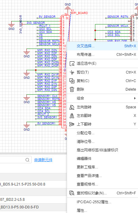 比如我已经一个原理图所有引脚的网络已经标注好了 但是我发现标注的引脚上下反了,我想把这个器件y轴翻转一下由原来的1号脚是5V_SENSOR地变成了36号脚是5V_SENSOR,类似orcad的mirror vertical 功能