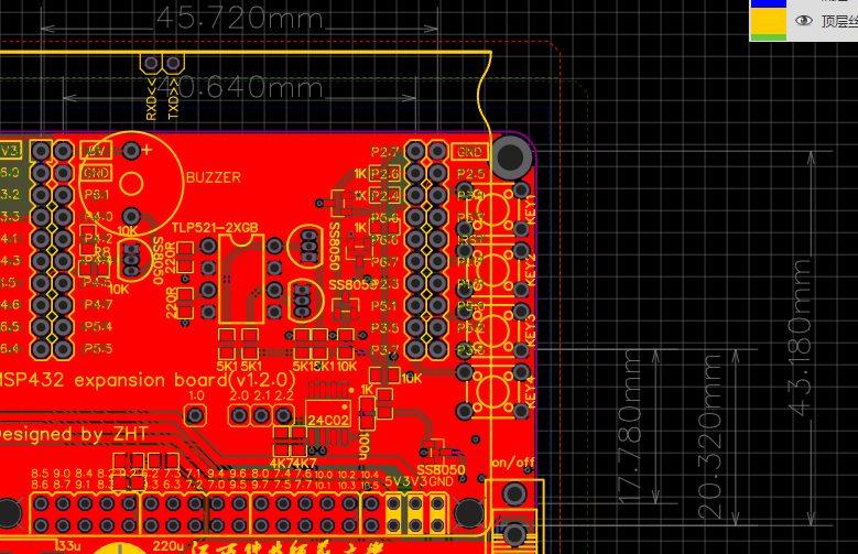 因为想做拓展版,msp432的尺寸图没找到,就找别人的开源,不会很多操作,就量了大概尺寸。就确定了焊盘和焊盘之间的距离,但是不知道怎么修改焊盘和焊盘之间的位置。这是我的,想要焊盘距离变成17.80这是别人的开源作品,自己大概量了一下
