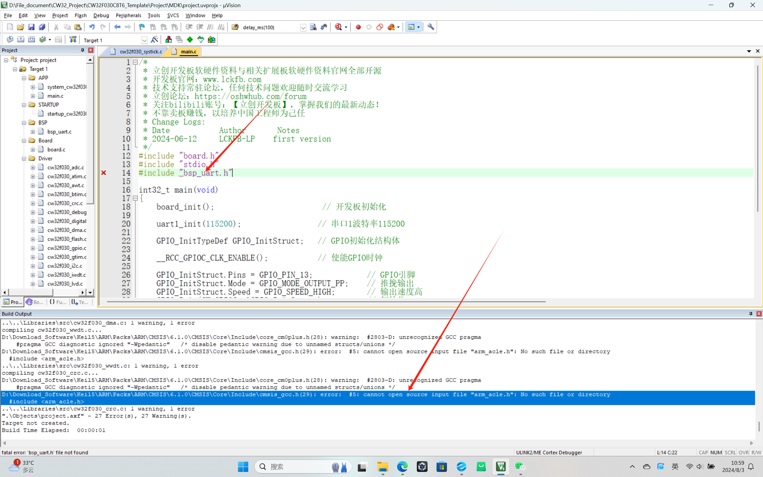 D:\Download_Software\Keil5\ARM\Packs\ARM\CMSIS\6.1.0\CMSIS\Core\Include\cmsis_gcc.h(29): error: #5: cannot open source input file "arm_acle.h": No such file or directory