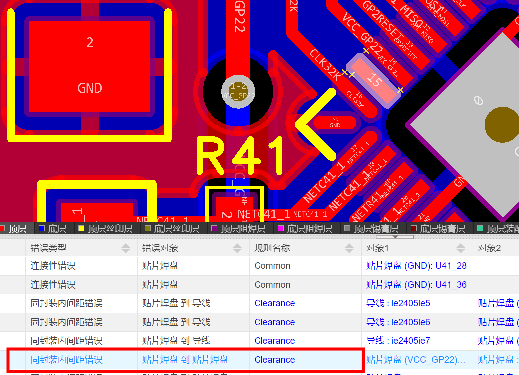 DRC报错,同封装内间距错误,请问这种报错怎么处理呢?