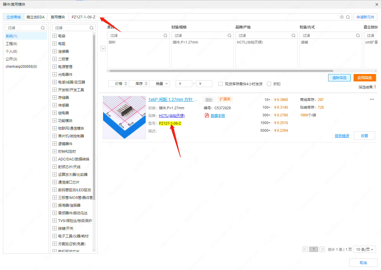 查找插针,弹出来的都不是想要找的,也没有类目可选