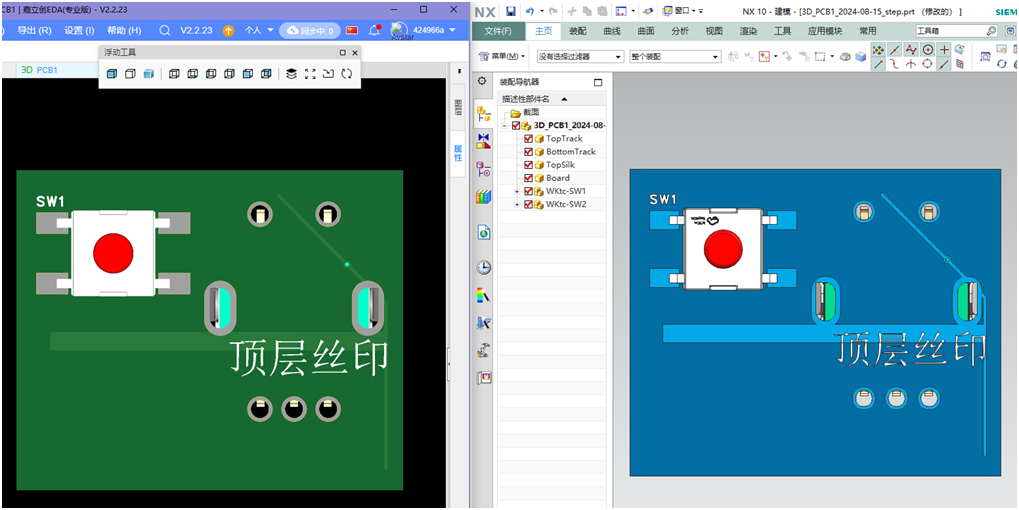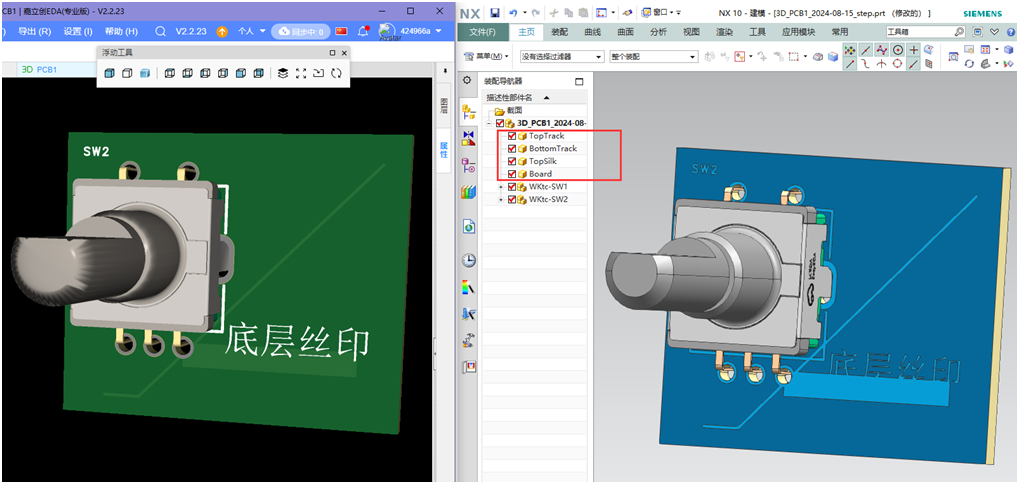 从EDA内导出3D文件,用UG打开后,顶层与顶层丝印正常,但底层与底层丝印自动合并了,缺少独立底层丝印。另外板的颜色固定为蓝色,不随EDA内的设置变化。