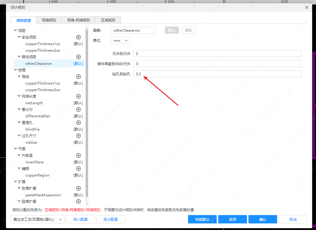 EDA如何设置相同网络的间距为0,同网络2个过孔报间距错误