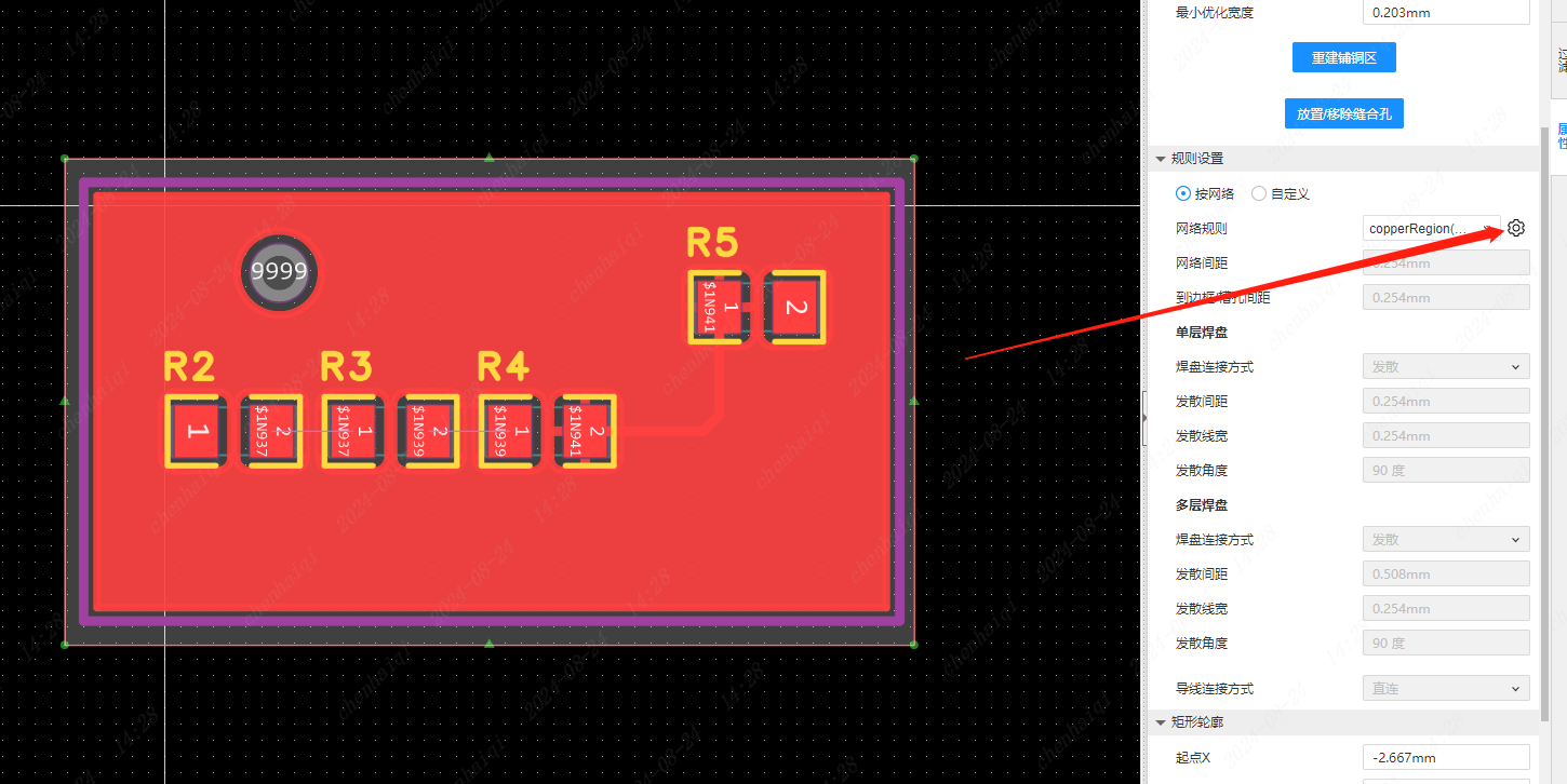 请问铺铜设置是否只有这一个地方可以调整,是否有其它地方可以设置与贴片焊盘、与插件焊盘、与板框的距离