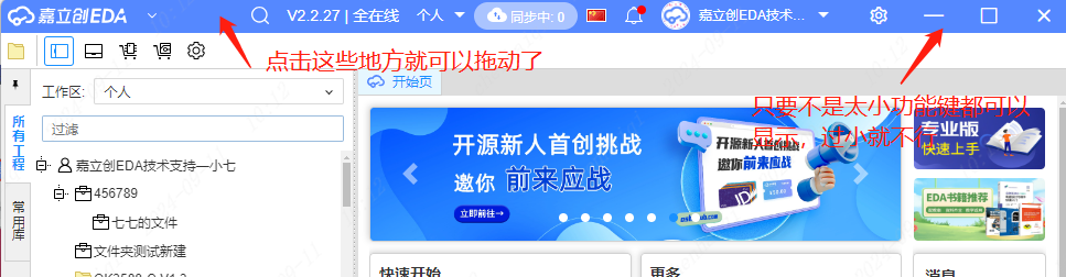 立创eda专业版在缩放时,顶部区域无法完成鼠标的点击移动。