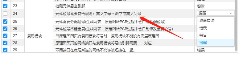 能不能自己定义规则,看软件里面只有取消或者调整提示的模式,我想改成英文字母+数字+符号可以吗?或者说比如板子上有多个一样的封装时如何自定义命名?