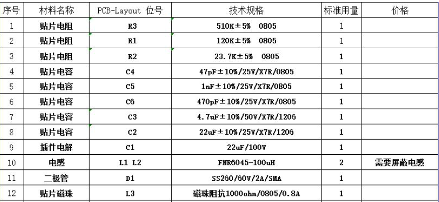 3. BOM 清单:Vi=12-48V Vo=5V Io=0.6A
