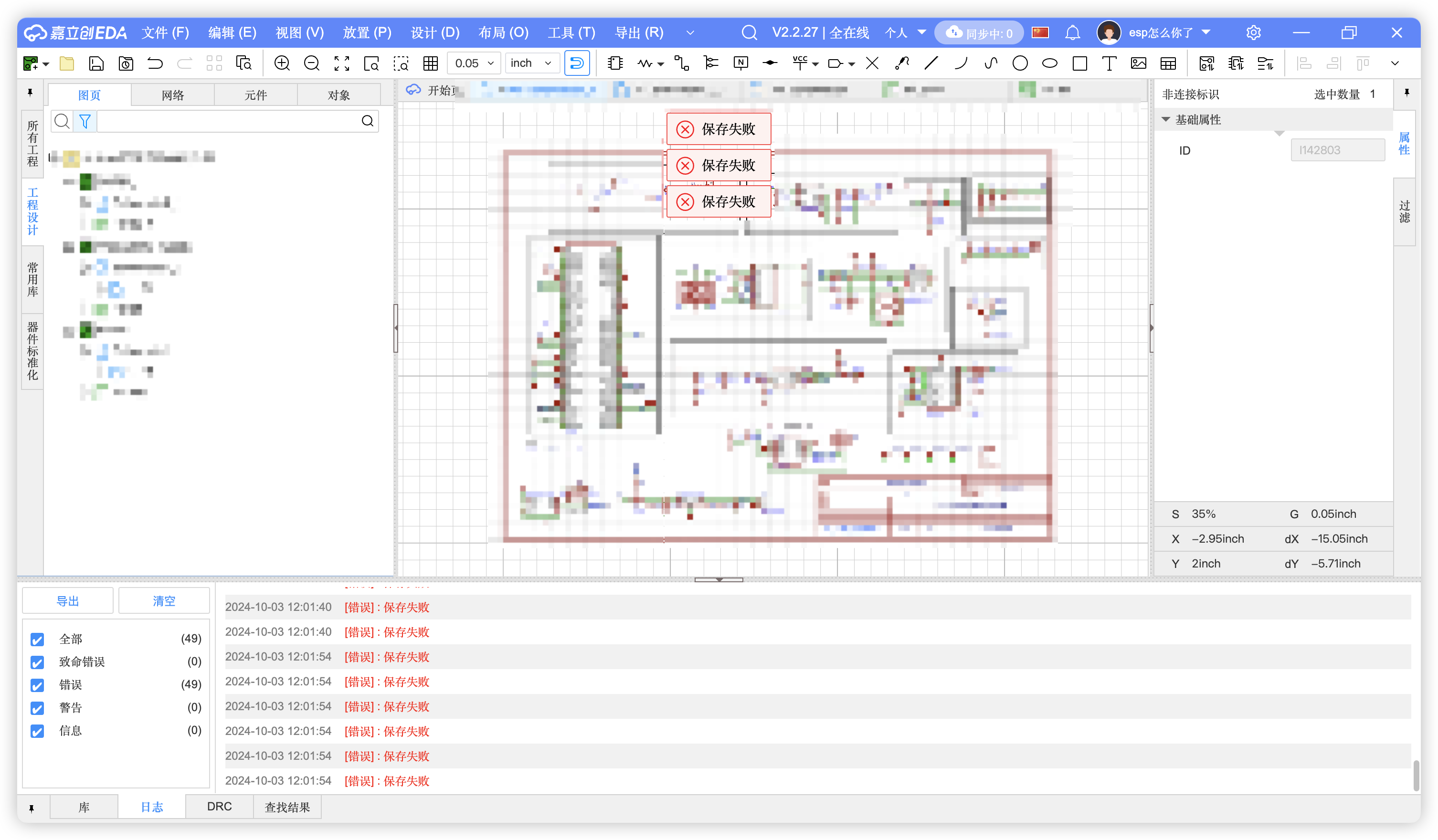 终于找上eda的bug了,立创eda全在线模式下晚上和节假日都不能保存诶