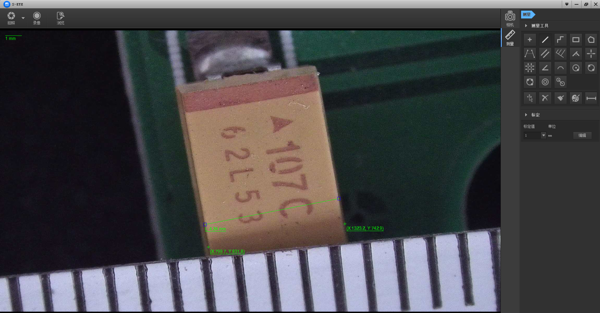 s-eye这个软件想必大家都很熟悉。能够连接工业摄像头拍照,实现电子显微镜的功能。并且可以设置校准比例尺,从而通过软件测量镜头下物品的实际尺寸。
