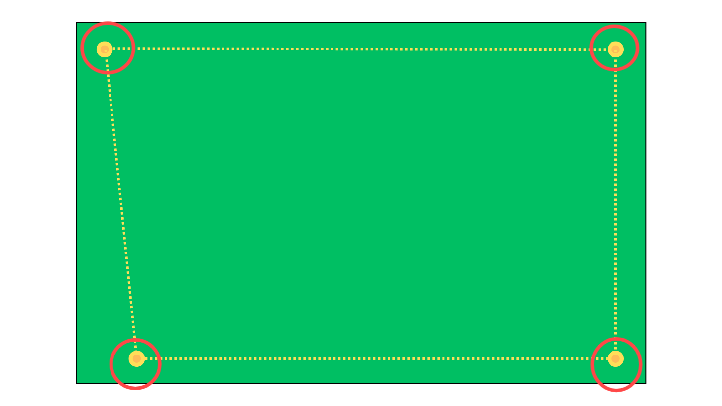 mark点尽量添加在线路板的四个角,使mark点的面积能大范围的覆盖板上所有需要贴装的器件。