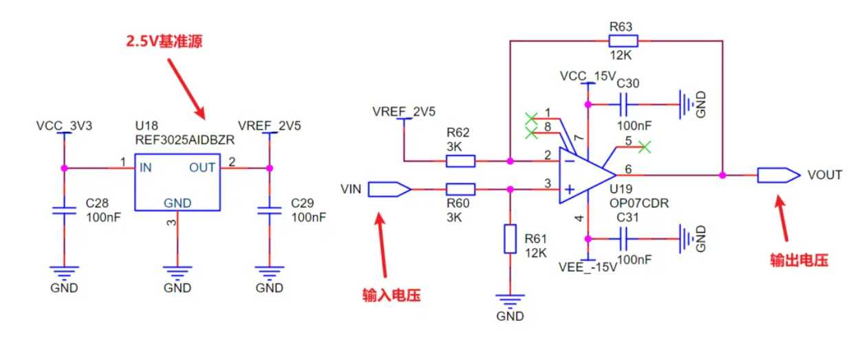 下图中输出公式为:VOUT=4*(VIN-2.5)。