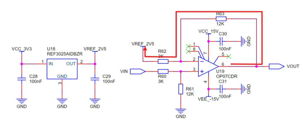 3.REF3025输出后增加电压跟随器输出2.5V基准源,电压跟随器可以支持灌电流。#嘉立创PCB##畅聊专区##嘉立创#