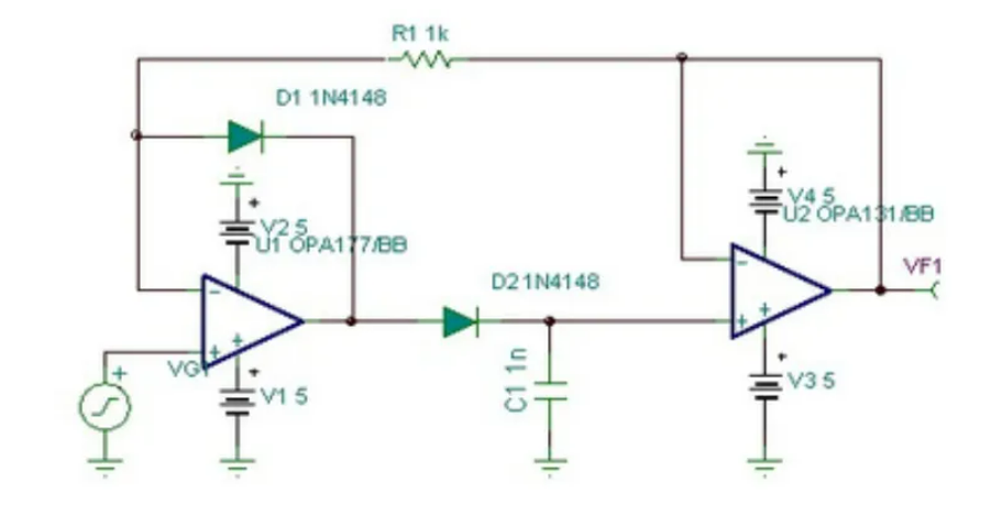 如下图,D2和C1组成峰值检测电路,主要利用二极管的单向导通性。