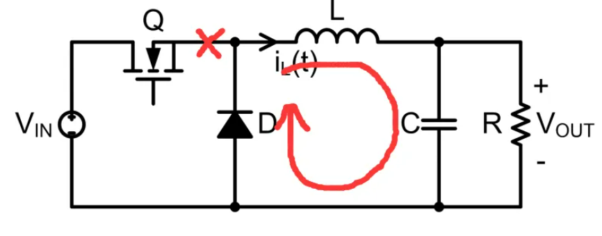 以BUCK电路为例,当Q管截止时,D二极管将为电感L提供续流回路,电感L继续为电容C和负载R供电。同理继电器驱动电路也是如此,一般感性负载驱动电路都会用到续流二极管,以防止感性负载产生的反电动势损坏电路,例如继电器,电机,喇叭等等。