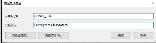 变量名为DOTNET_ROOT,变量值为.NET SDK的安装路径,一般的默认安装路径为C:\Program Files\dotnet,所以变量值一般为C:\Program Files\dotnet