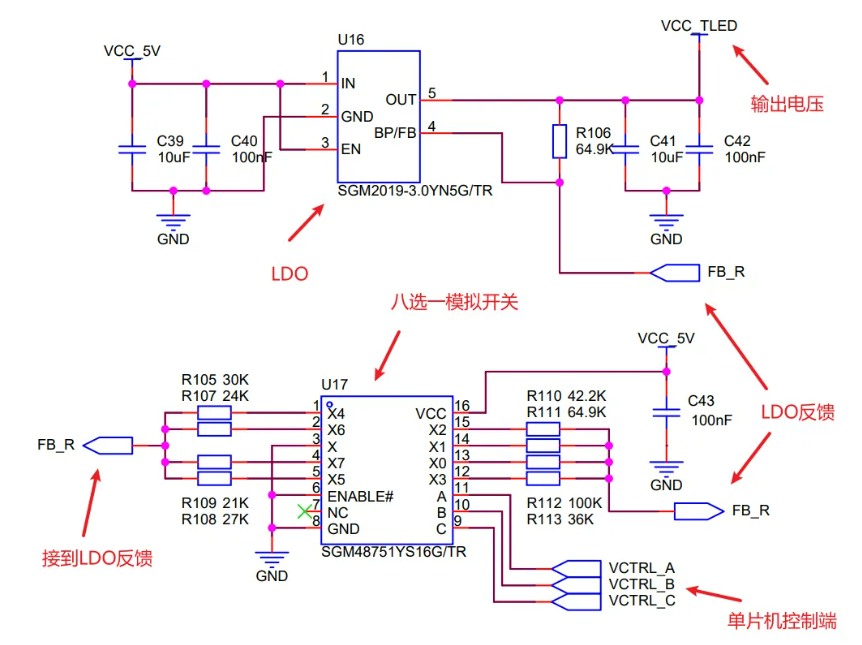 以此类推,便可以通过控制VCTRLA,VCTRLB,VCTRLC为000~111这8种状态,来让LDO输出8种不同的电压值.#嘉立创PCB##PCB有什么好玩的##畅聊专区#