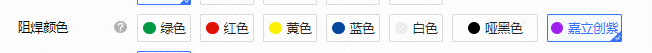如嘉立创提供:绿色、红色、黄色、蓝色、白色、黑色、还有专属的嘉立创紫色。