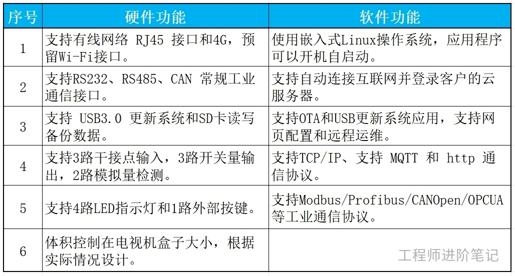 事情是这样的,我们团队在三个月之前接到了一项硬件产品定制任务,客户想我们帮他定制一款工业网关,简单地罗列一下,产品大概有以下这些功能: