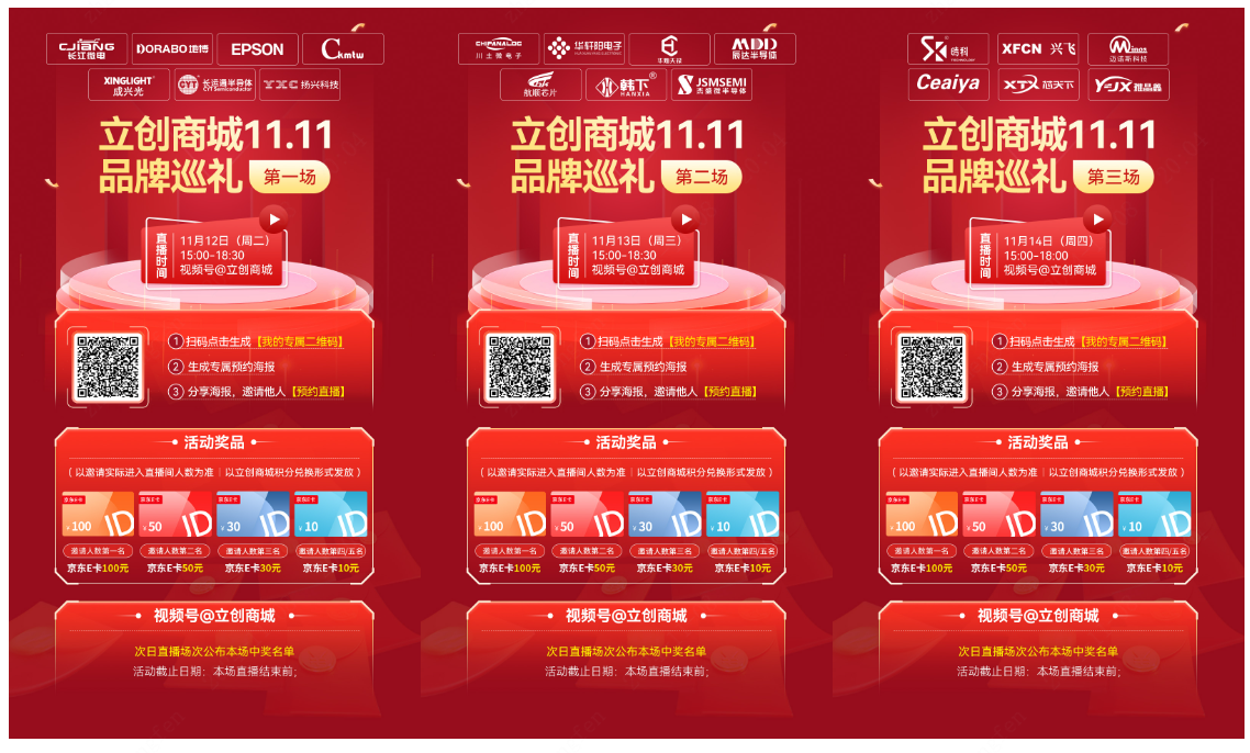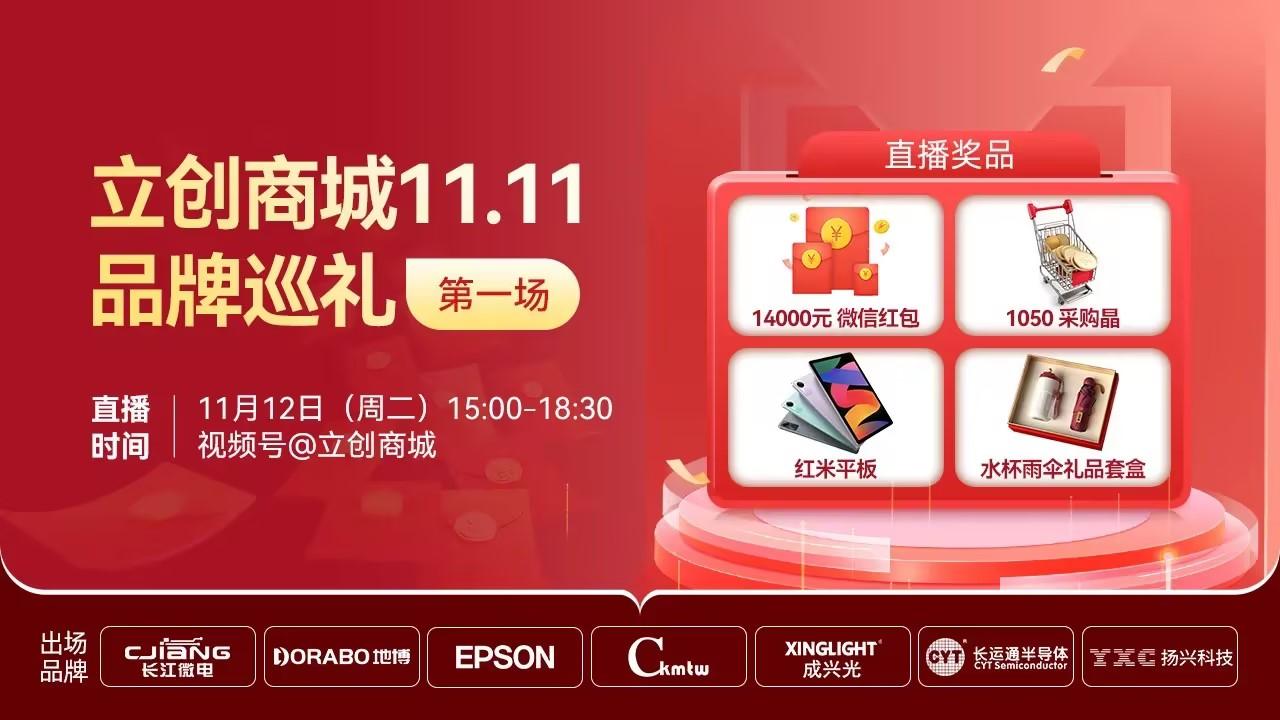 观看直播的同时,也别忘记在11月13-15日期间上立创商城参与立创11.11活动,下单将有机会得5万元京东E卡+一款奥运冠军亲签大礼!