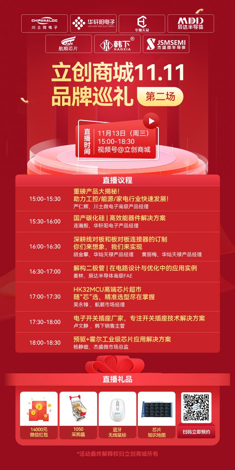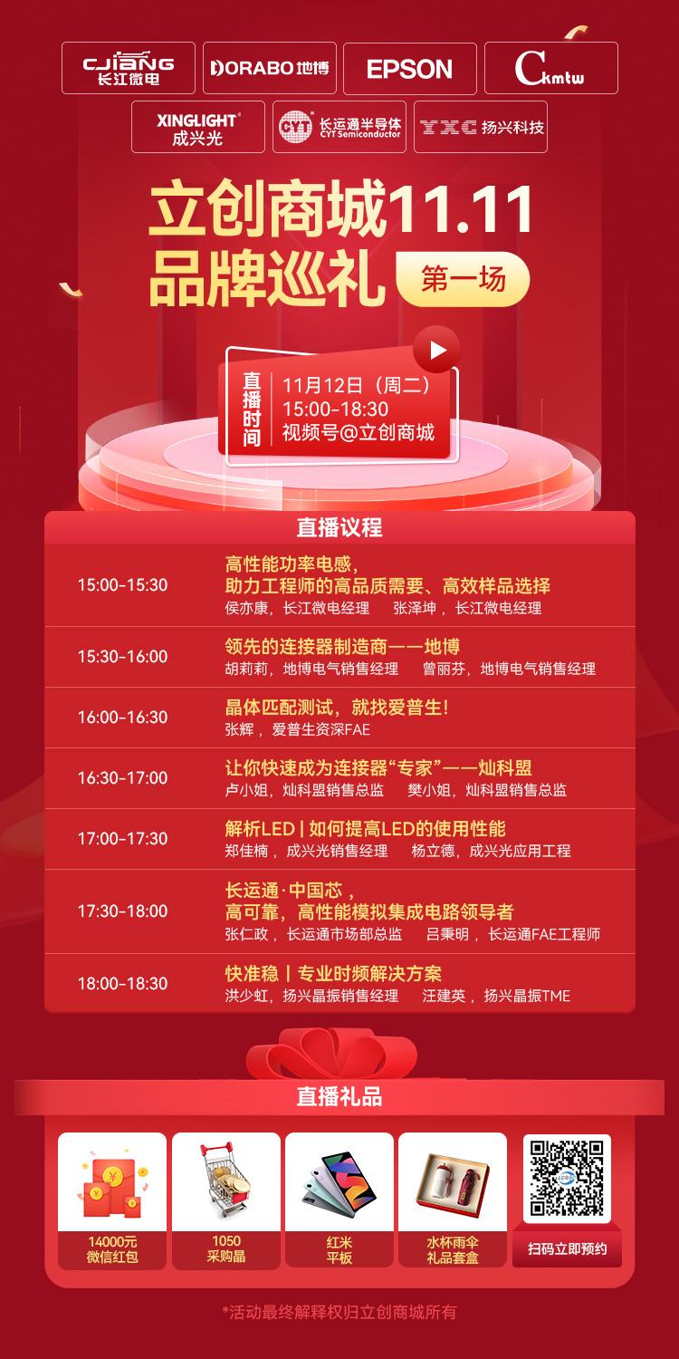 大家都知道了吧,立创11.11将在11月13-15日正式开启!那在开启购物模式前应该干什么?当然是提前学习了解怎么采购到适合自己的元器件型号!所以在11月12-14日每天15:00-18:30,我们为广大电子工程师和电子爱好者准备了一场“元器件选型教学”盛宴,涵盖不同品类,一次性进行讲解!