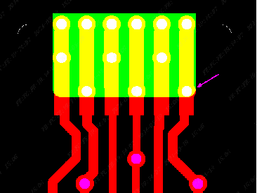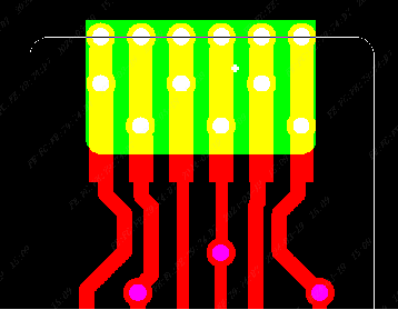 过孔不能设计在开窗边缘上,此处是焊接手指,焊接时有可能会弯折,应力会集中在无覆盖膜和有覆盖膜的交接处,如此处设计过孔,有可能会导致孔铜断裂