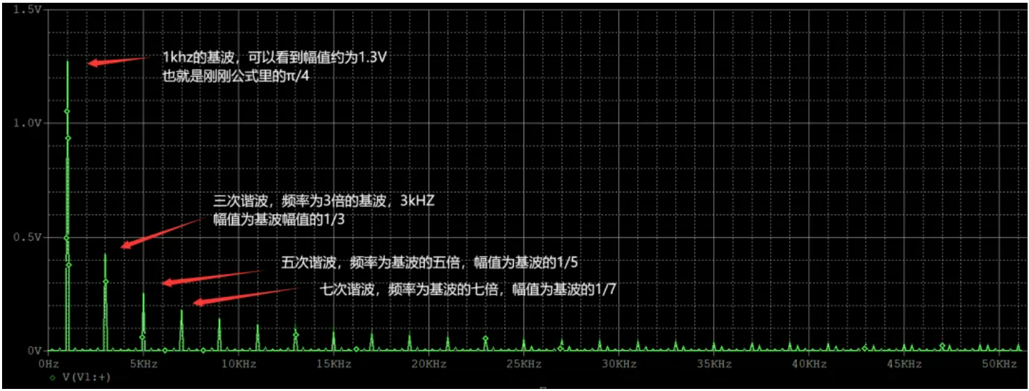 不过这时,不知您是否心中会闪过一丝疑问:为什么只有奇次谐波,没有看到偶次谐波??那么在这里只提一个结论,推导过程就不列在本文了。