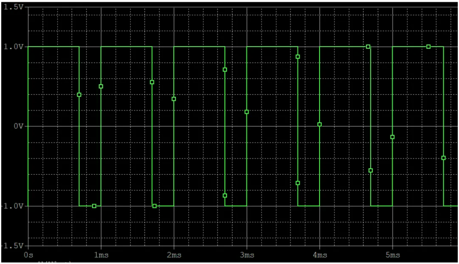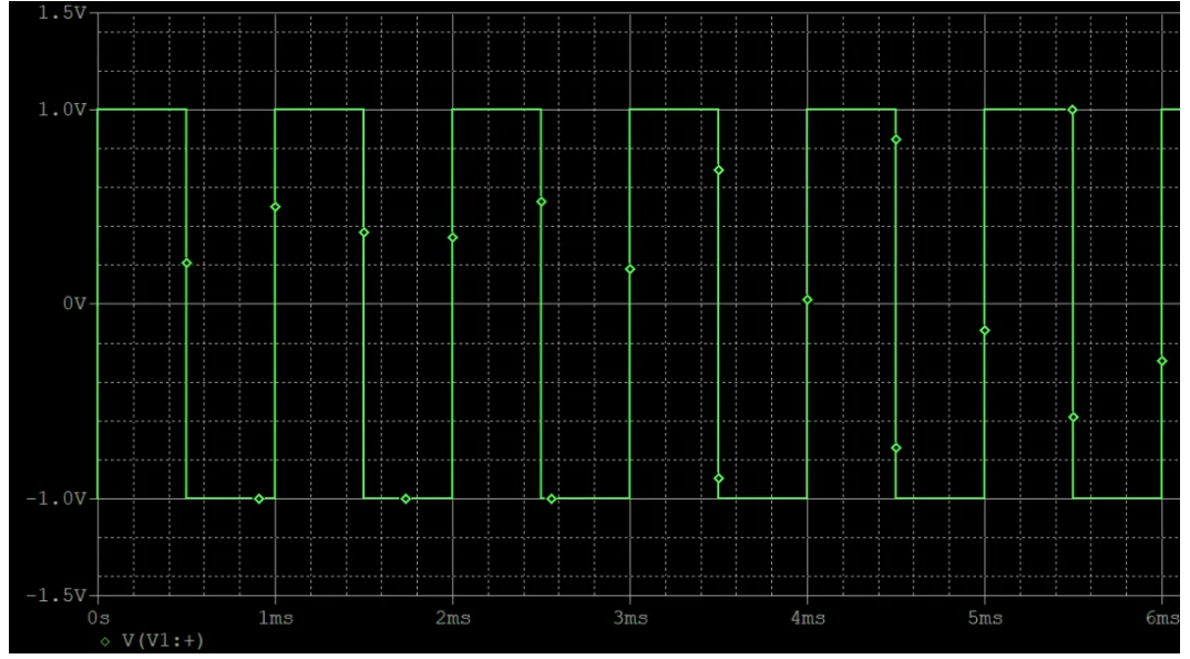 那么就开始做一下仿真验证一下,首先用PSpice输出一个频率为1kHz,幅值为1V的方波。时域波形如下所示: