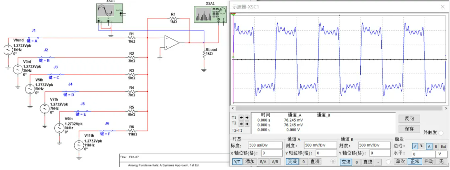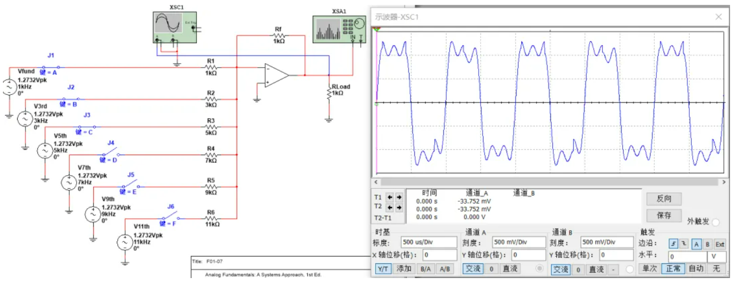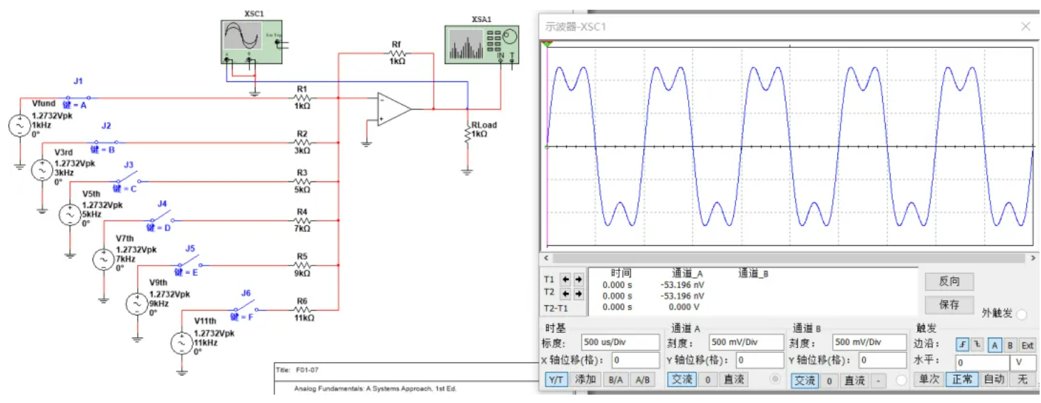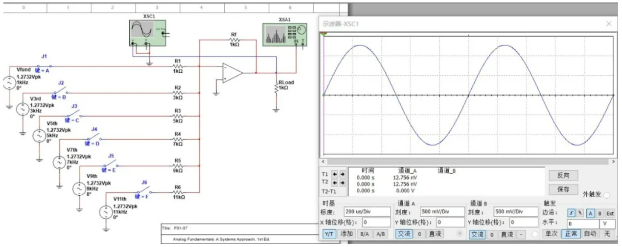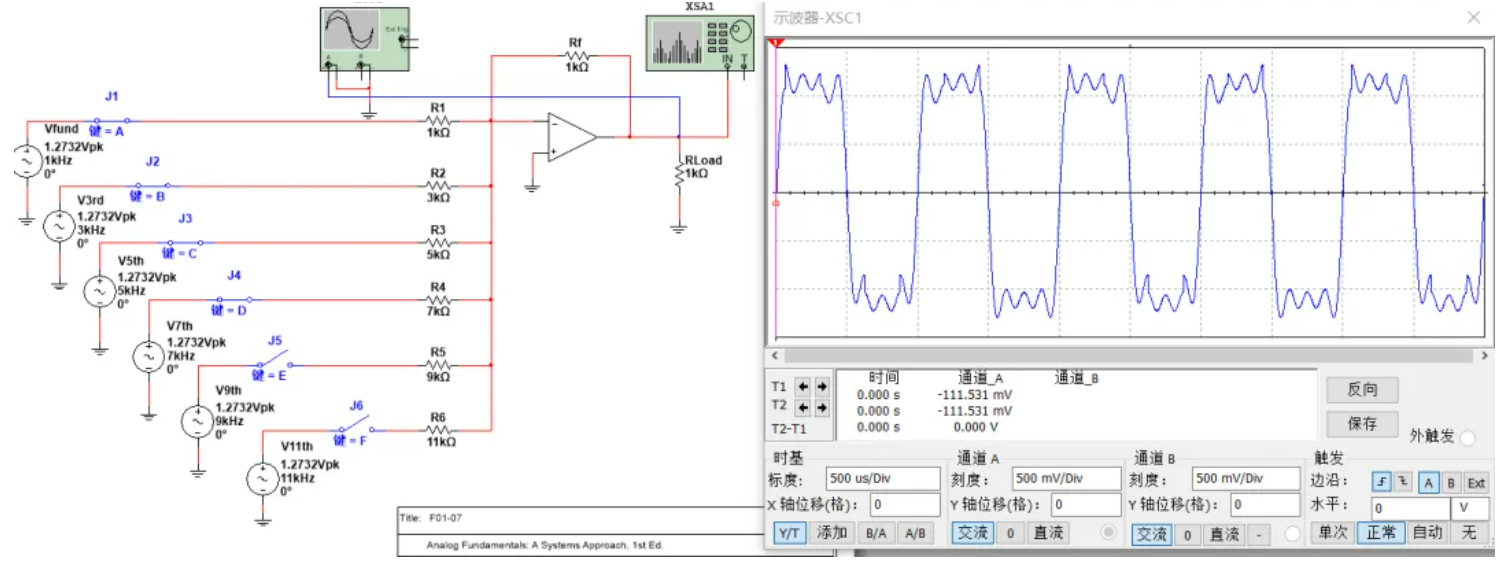 那么频域的分解我们得到了,是不是可以反推回去呢?这个我就直接找了一个multisim的仿真图