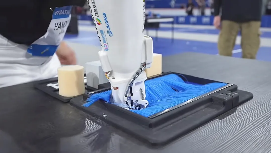 也就是说,谁的电动手臂接收信号越灵敏、越准确,谁就能越快完成比赛。