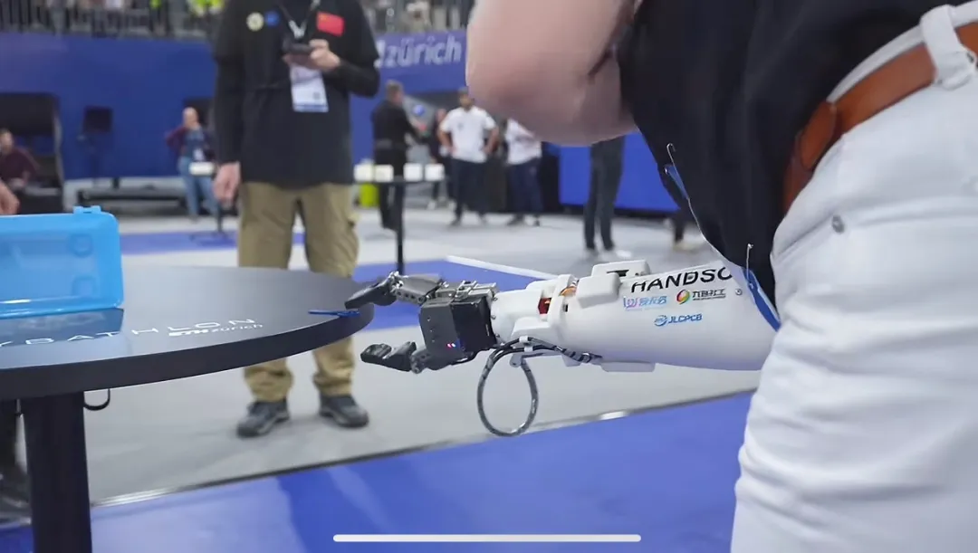 “在此次参赛的义肢中,我们突破了假肢力触觉传感与反馈、体躯-肌电自适应协同控制、机器视觉环境理解与感知等多项关键技术瓶颈,实现了肌电信号解码识别、力感知与力反馈、灵巧机构设计等功能,并在嘉立创提供的电路板上高度集成与稳定运行,确保了义肢能够迅速且精准地完成各项比赛任务。” 团队领队、中国科学院苏州生物医学工程技术研究所博士后胡旭晖如是说道。