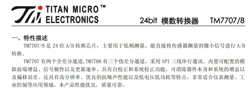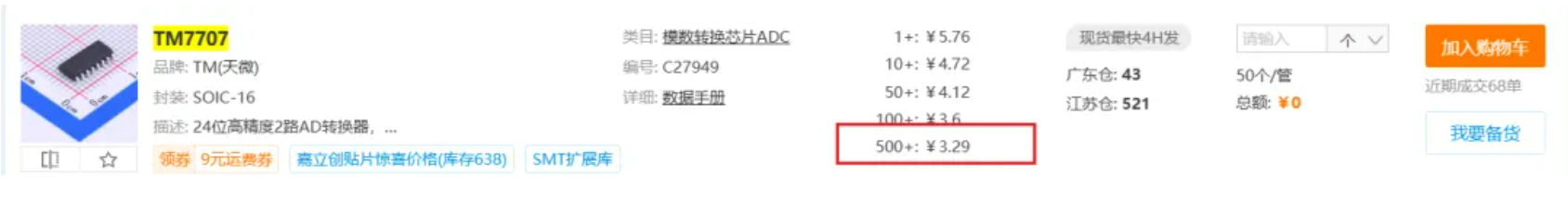 看TM7707批量价格大概是3.3左右,24bit双通道,还是很有性价比的一款芯片。